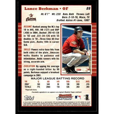 This is a 2005 Bowman Chrome Lance Berkman baseball card. The card is #89 and pictures show condition.