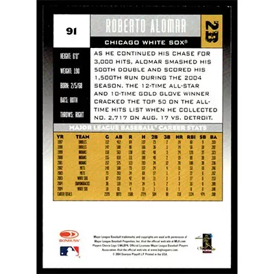 This is a 2005 Donruss Roberto Alomar baseball card. The card is #91 and pictures show condition.