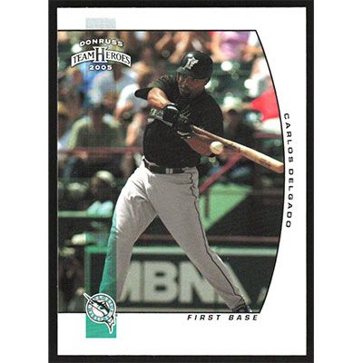This is a 2005 Donruss Team Heroes Carlos Delgado baseball card. The card is #439 and pictures show condition.