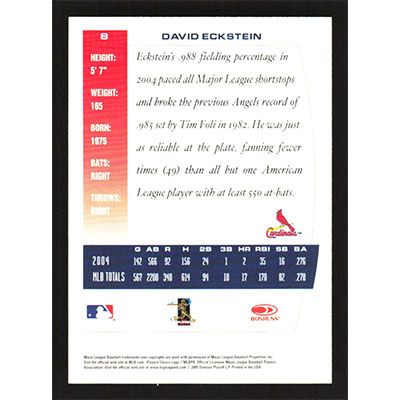 This is a 2005 Donruss Team Heroes Showdown Red David Eckstein baseball card. The card is #8 and pictures show condition.