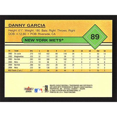 This is a 2005 Fleer Tradition Danny Garcia baseball card. The card is #89 and pictures show condition.