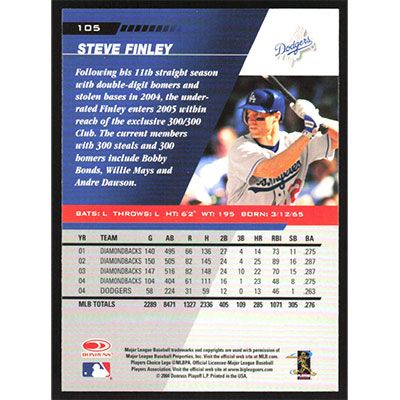 This is a 2005 Leaf Steve Finley baseball card. The card is #105 and pictures show condition.