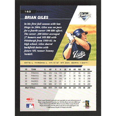 This is a 2005 Leaf Brian Giles baseball card. The card is #162 and pictures show condition.