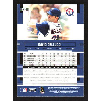 This is a 2005 Playoff Prestige David Dellucci baseball card. The card is #137 and pictures show condition.