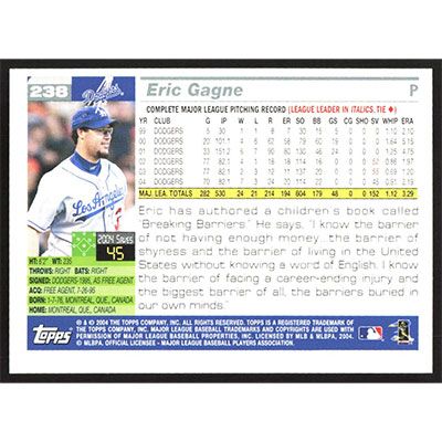 This is a 2005 Topps Eric Gagne baseball card. The card is #238 and pictures show condition.