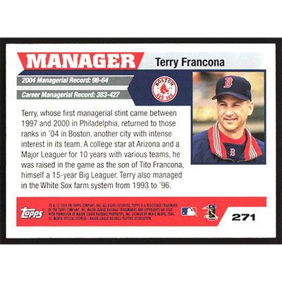 This is a 2005 Topps Terry Francona baseball card. The card is #271 and pictures show condition.