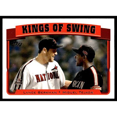 This is a 2005 Topps Lance Berkman and Miguel Tejada Kings of Swing baseball card. The card is #694 and pictures show condition. Team(s): Houston Astros/Baltimore Orioles
