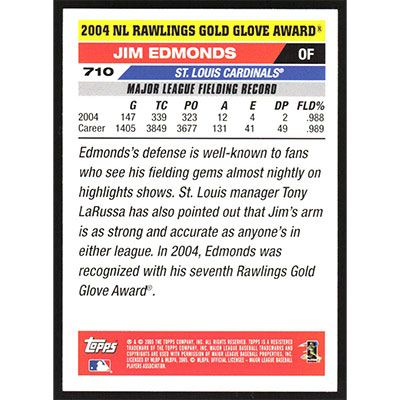This is a 2005 Topps Jim Edmonds Award Winner baseball card. The card is #710 and pictures show condition.