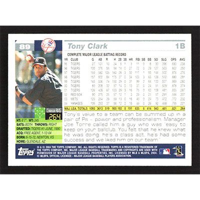 This is a 2005 Topps Tony Clark baseball card. The card is #89 and pictures show condition.