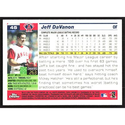 This is a 2005 Topps Chrome Jeff DaVanon baseball card. The card is #45 and pictures show condition.