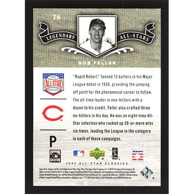 This is a 2005 UD All-Star Classics Bob Feller baseball card. The card is #78 and pictures show condition.