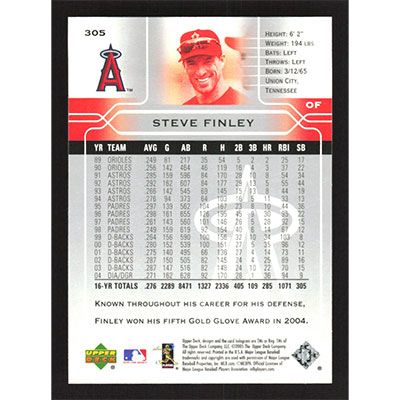 This is a 2005 Upper Deck Steve Finley baseball card. The card is #305 and pictures show condition.