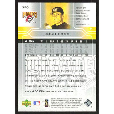 This is a 2005 Upper Deck Josh Fogg baseball card. The card is #390 and pictures show condition.