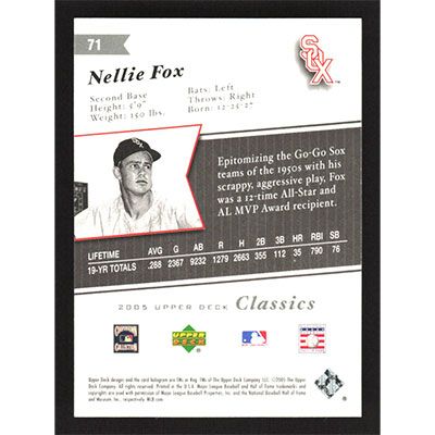 This is a 2005 Upper Deck Classics Nellie Fox baseball card. The card is #71 and pictures show condition.