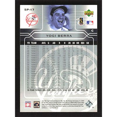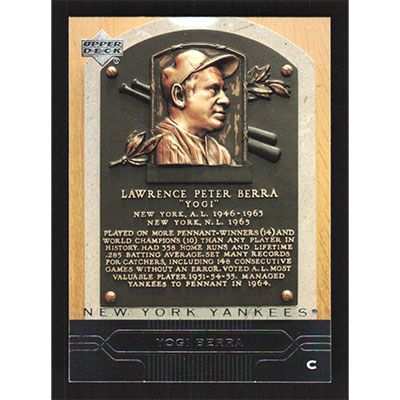 This is a 2005 Upper Deck Hall of Fame Plaques Yogi Berra baseball card. The card is #SP-17 and pictures show condition.