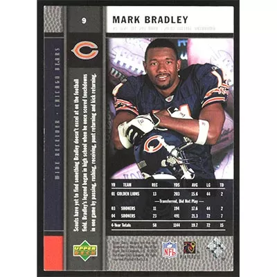 This is a 2005 Upper Deck Rookie Premiere Mark Bradley football card. The card is #9 and pictures show condition.