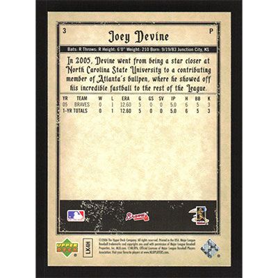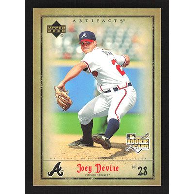 This is a 2006 Artifacts Joey Devine baseball card. The card is #3 and pictures show condition.