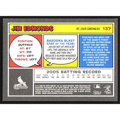This is a 2006 Bazooka Jim Edmonds baseball card. The card is #137 and pictures show condition.