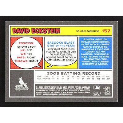 This is a 2006 Bazooka David Eckstein baseball card. The card is #157 and pictures show condition.