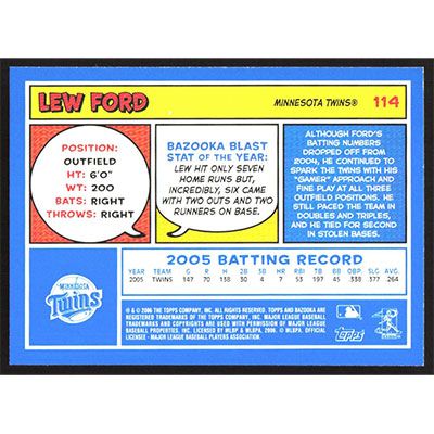 This is a 2006 Bazooka Blue Fortune Lew Ford baseball card. The card is #114 and pictures show condition.