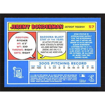 This is a 2006 Bazooka Blue Fortune Jeremy Bonderman baseball card. The card is #57 and pictures show condition.