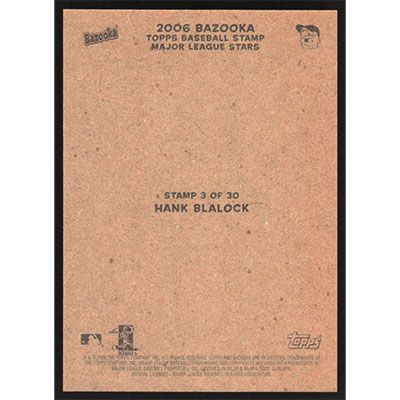 This is a 2006 Bazooka Stamps Hank Blalock baseball card. The card is #3 and pictures show condition.