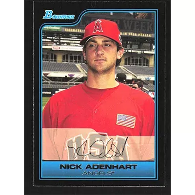 This is a 2006 Bowman Draf Futures Game Prospects Nick Adenhart baseball card. The card is #FG1 and pictures show condition.