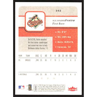 This is a 2006 Fleer Alejandro Freire baseball card. The card is #242 and pictures show condition.