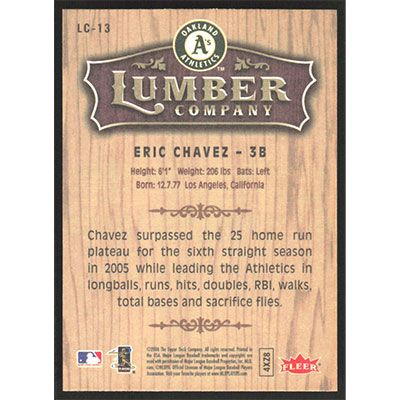 This is a 2006 Fleer Lumber Company Eric Chavez baseball card. The card is #LC-13 and pictures show condition.