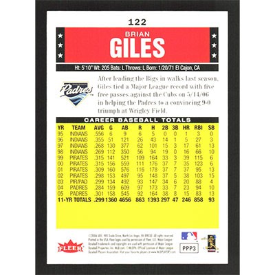 This is a 2006 Fleer Tradition Brian Giles baseball card. The card is #122 and pictures show condition.