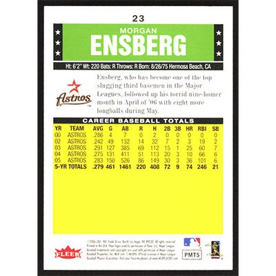 This is a 2006 Fleer Tradition Morgan Ensberg baseball card. The card is #23 and pictures show condition.