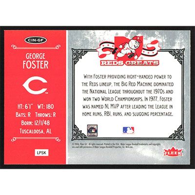 This is a 2006 Greats of the Game Reds Greats George Foster baseball card. The card is #CIN-GF and pictures show condition.