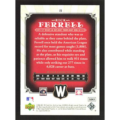 This is a 2006 SP Legendary Cuts Rick Ferrell baseball card. The card is #8 and pictures show condition.