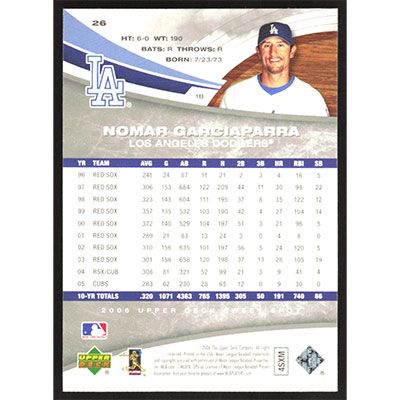 This is a 2006 Sweet Spot Nomar Garciaparra baseball card. The card is #26 and pictures show condition.