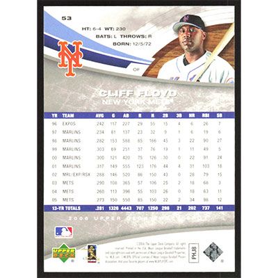 This is a 2006 Sweet Spot Cliff Floyd baseball card. The card is #53 and pictures show condition.