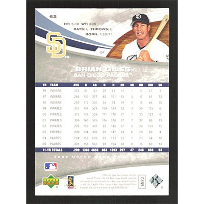This is a 2006 Sweet Spot Brian Giles baseball card. The card is #62 and pictures show condition.