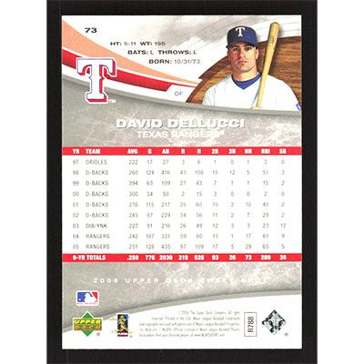 This is a 2006 Sweet Spot David Dellucci baseball card. The card is #73 and pictures show condition.