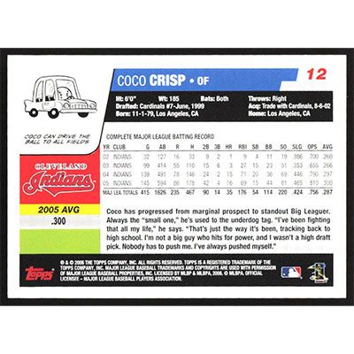 This is a 2006 Topps Coco Crisp baseball card. The card is #12 and pictures show condition.