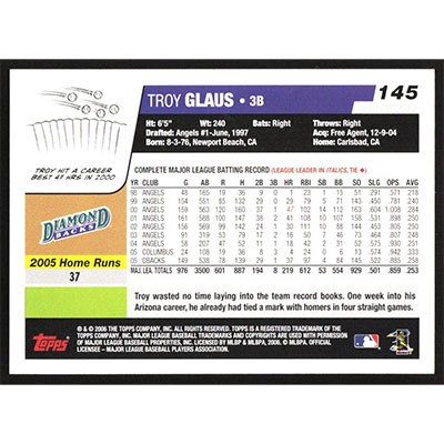 This is a 2006 Topps Troy Glaus baseball card. The card is #145 and pictures show condition.