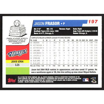 This is a 2006 Topps Jason Frasor baseball card. The card is #197 and pictures show condition.