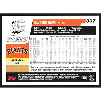 This is a 2006 Topps Ray Durham baseball card. The card is #367 and pictures show condition.