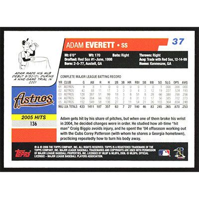 This is a 2006 Topps Adam Everett baseball card. The card is #37 and pictures show condition.