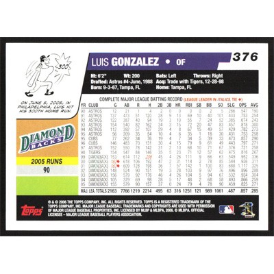 This is a 2006 Topps Luis Gonzalez baseball card. The card is #376 and pictures show condition.
