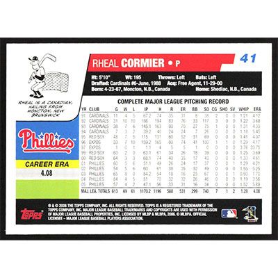 This is a 2006 Topps Rheal Cormier baseball card. The card is #41 and pictures show condition.