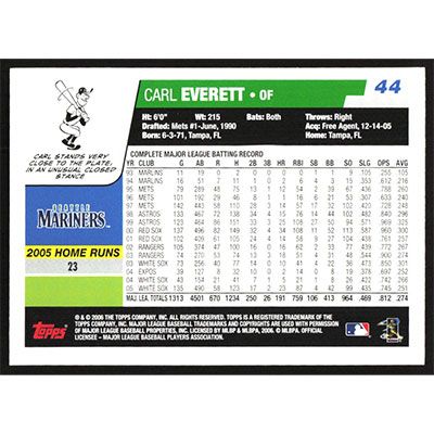 This is a 2006 Topps Carl Everett baseball card. The card is #44 and pictures show condition.