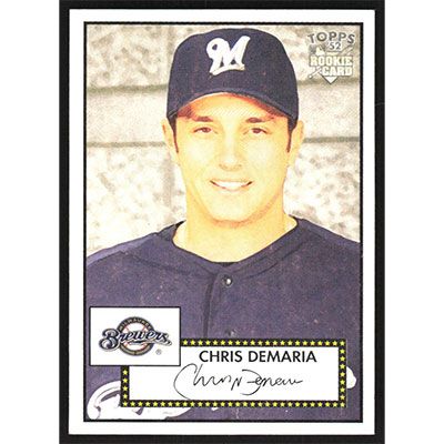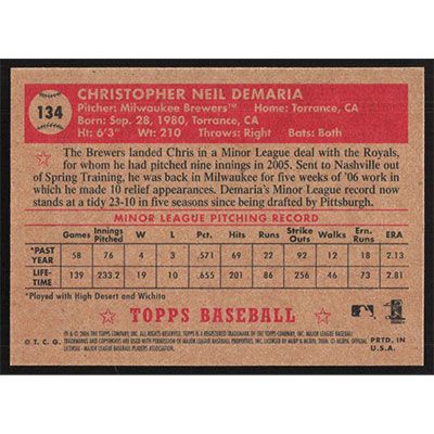 This is a 2006 Topps '52 Chris Demaria baseball card. The card is #134 and pictures show condition.