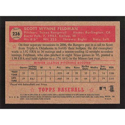 This is a 2006 Topps '52 Scott Feldman baseball card. The card is #236 and pictures show condition.
