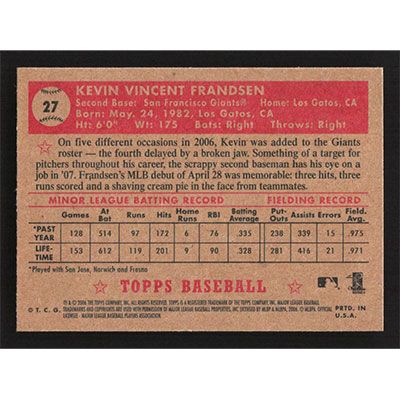 This is a 2006 Topps '52 Kevin Frandsen baseball card. The card is #27 and pictures show condition.