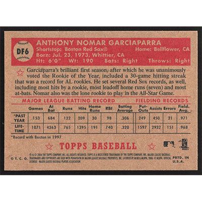 This is a 2006 Topps '52 Debut Flashbacks Nomar Garciaparra baseball card. The card is #DF6 and pictures show condition.
