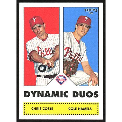This is a 2006 Topps '52 Dynamic Duos Chris Coste and Cole Hamels baseball card. The card is #DD8 and pictures show condition. Team(s): Philadelphia Phillies
